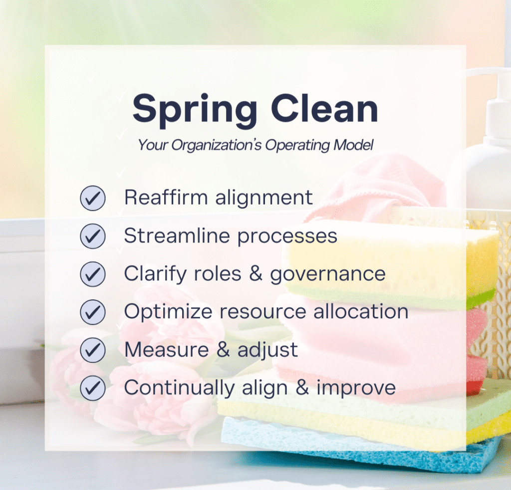 As spring ushers in a season of renewal, it’s an opportune time for organizations to rejuvenate their operating models. Just as we declutter our homes, businesses can benefit from a “spring cleaning” to enhance efficiency, align with strategic goals and foster sustainable growth.
